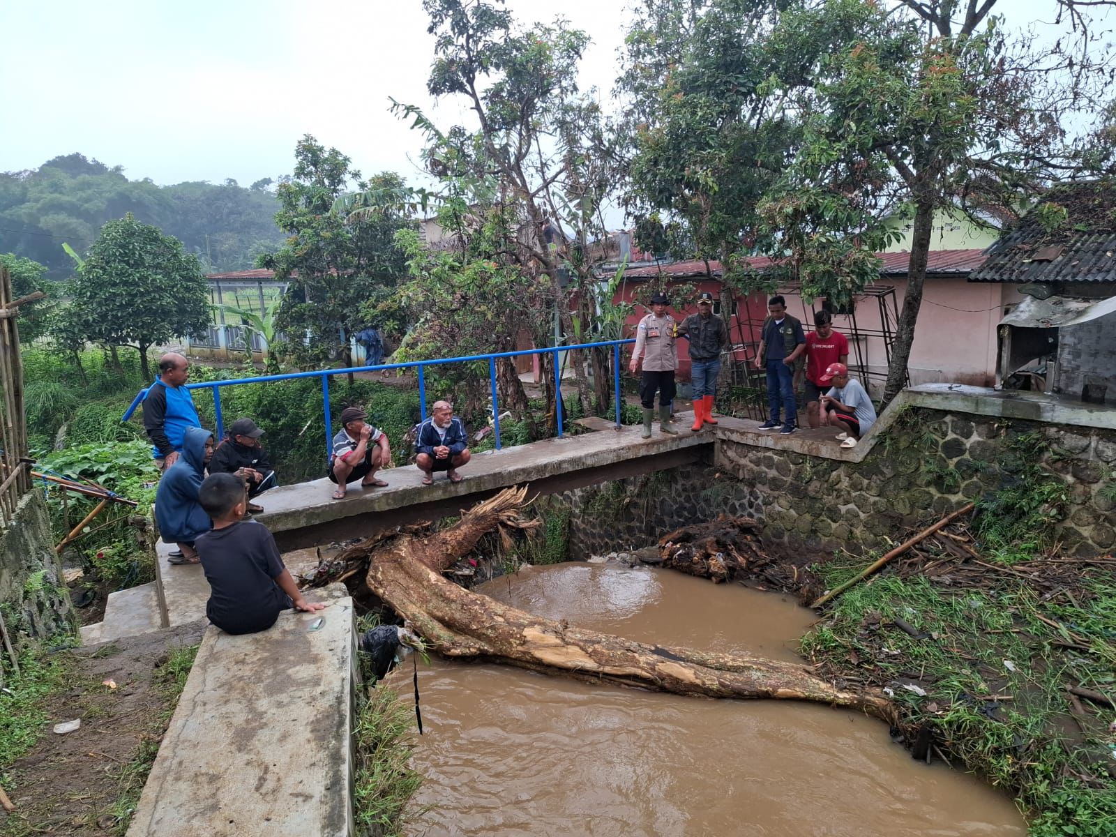 Kegiatan dipimpin langsung Kapolsek Pasirwangi Iptu Wahyono Aji bersama personel dan unsur gabungan, meliputi evakuasi material kayu besar yang menyumbat aliran sungai serta pembersihan material longsor yang menutup akses jalan umum di beberapa titik terdampak.