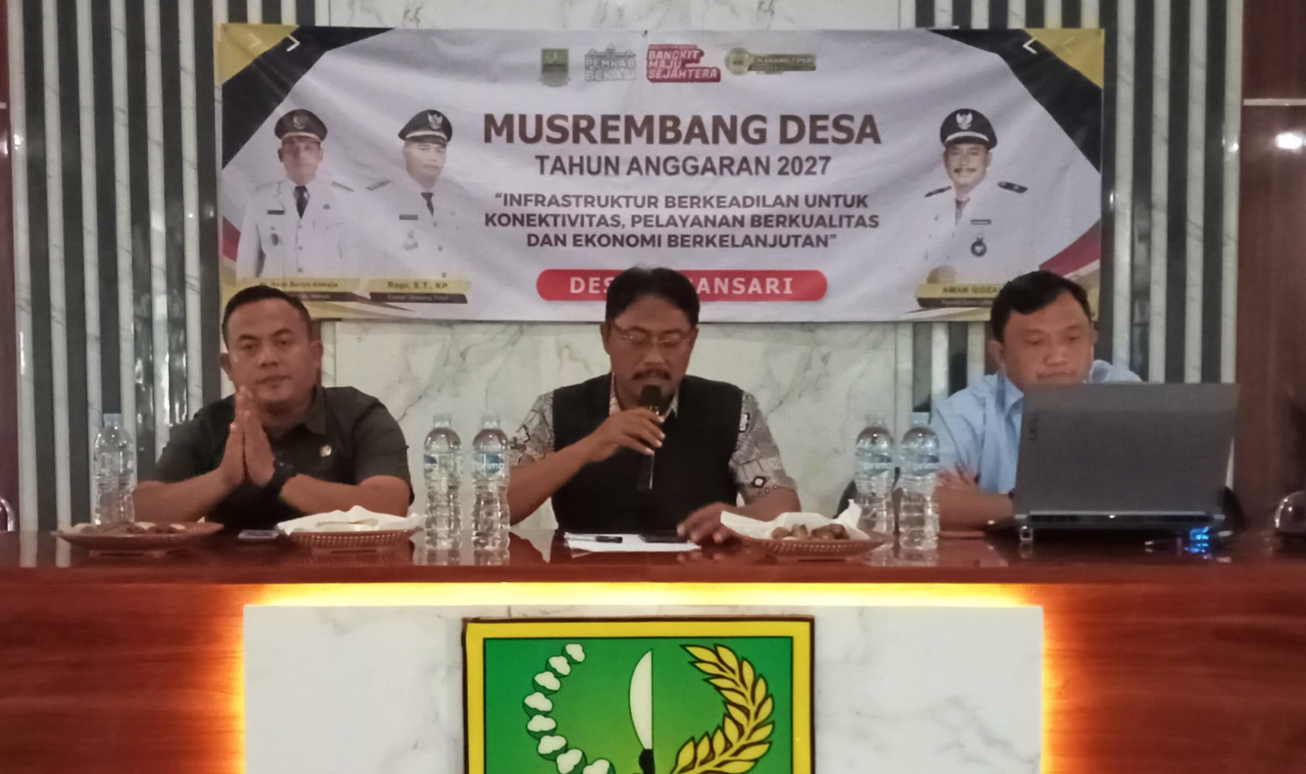 Bekasi,TRIBUNPRIBUMI.com – Pemerintah Desa Labansari menyelenggarakan Musyawarah Perencanaan Pembangunan Desa (Musrenbangdes) untuk Tahun Anggaran 2027 pada Kamis (22/01/2026). Bertempat di Aula Kantor Desa Labansari, Kecamatan Cikarang Timur, Kabupaten Bekasi, Jawa Barat, acara ini mengusung tema besar: “Infrastruktur Berkeadilan untuk Konektivitas, Pelayanan Berkualitas, dan Ekonomi Berkelanjutan.”