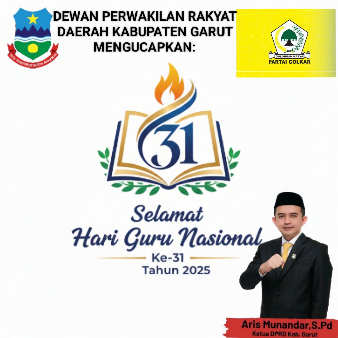 BERITA DAERAH DEWAN PERWAKILAN RAKYAT DAERAH KABUPATEN GARUT RedaksiNovember 25, 2025November 25, 2025 Mengucapkan: Selamat Hari Guru Nasional Ke-31 Tahun 2025