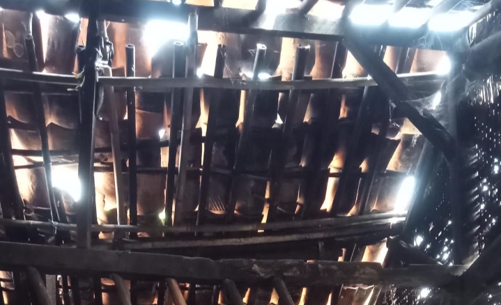 Bagian atap rumah pun tidak kalah mengkhawatirkan. Banyak kayu penyangga yang sudah lapuk dan lepas dari posisinya, membuat genteng terlihat tidak lagi kokoh. Kondisi ini sangat berbahaya, terlebih saat hujan deras disertai angin kencang melanda.