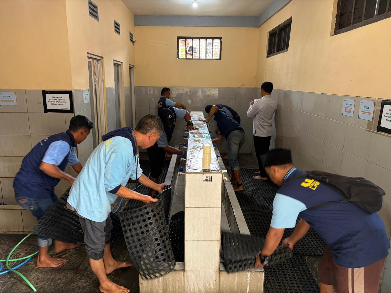 Sejak pagi hari, petugas pemasyarakatan bersama Warga Binaan Pemasyarakatan (WBP) yang telah melalui proses seleksi dan assessment keamanan terlihat membersihkan halaman masjid, menyapu ruang ibadah, merapikan taman, hingga membersihkan saluran air di sejumlah titik fasilitas umum. Suasana gotong royong berlangsung penuh semangat dan kebersamaan.