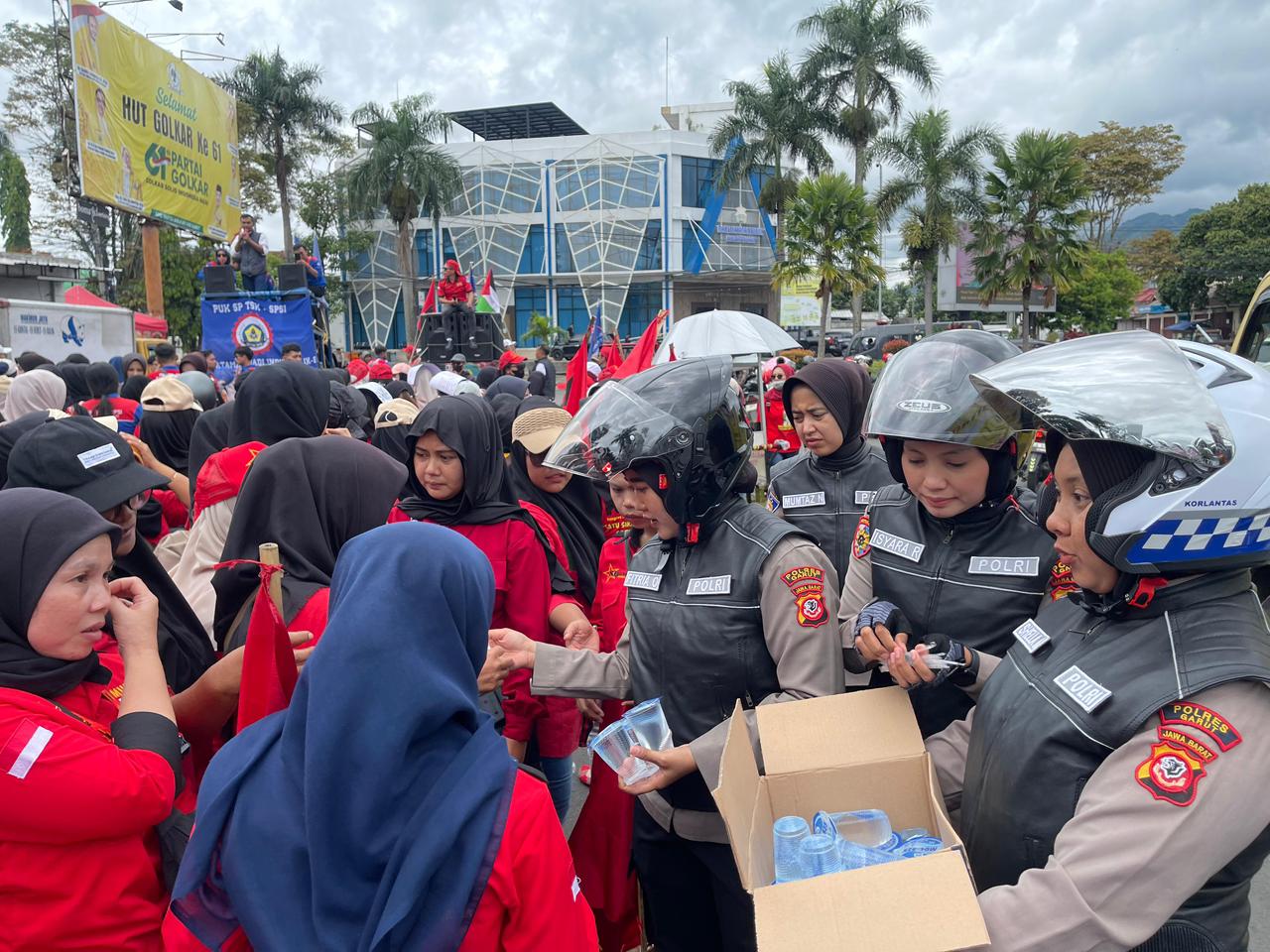 “Kami mengedepankan pendekatan dialogis dan humanis. Petugas di lapangan memberikan pelayanan terbaik kepada rekan-rekan buruh, termasuk menyediakan air minum dan permen untuk menjaga stamina mereka selama beraksi,” ujarnya.