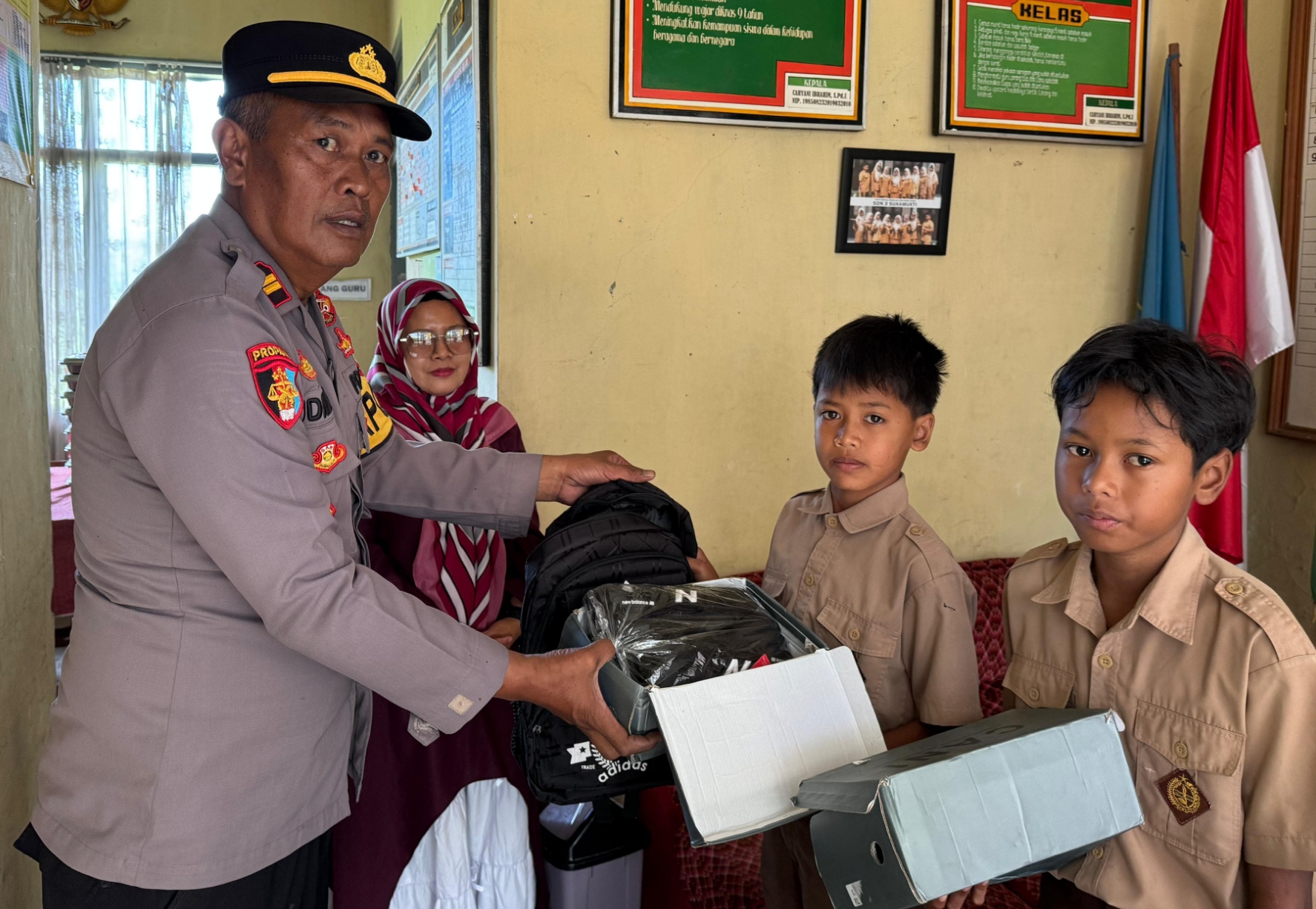 Garut,TRIBUNPRIBUMI.com – Polsek Sukawening Polres Garut melaksanakan bakti sosial dengan memberikan bantuan perlengkapan sekolah kepada anak-anak kurang mampu.