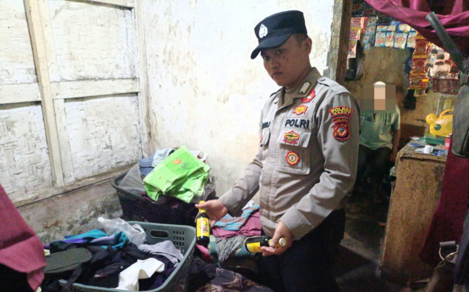 Adapun barang bukti yang berhasil diamankan petugas di antaranya 1 botol besar minuman merek Kawa Kawa, 1 botol besar minuman merek Intisari, 1 botol besar minuman merek AO dan 3 botol kecil minuman merek AO.