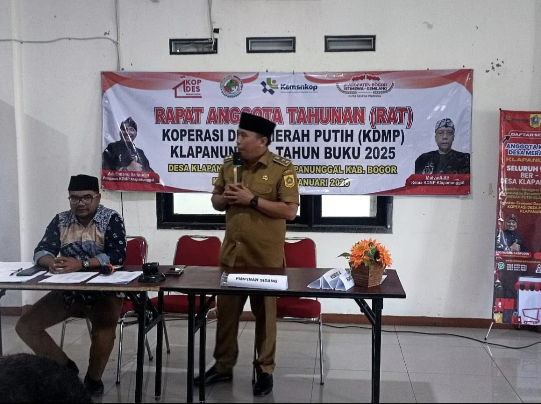 Bogor,TRIBUNPRIBUMI.com – Koperasi Desa Merah Putih (KDMP)  Desa Klapanunggal, Kecamatan Klapanunggal, Kabupaten Bogor,Jawa Barat, sukses menggelar Rapat Anggota Tahunan (RAT) Tahun Buku 2025 yang berlangsung dengan tertib dan penuh semangat kebersamaan Senin (19/01/2026).