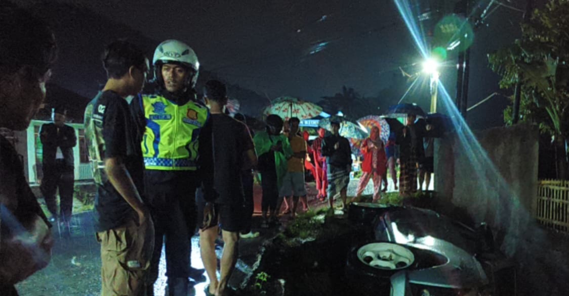 Garut,TRIBUNPRIBUMI.com – Sebuah kecelakaan lalu lintas tunggal terjadi di wilayah Kecamatan Kadungora, Kabupaten Garut, Sabtu (28/03/2026) malam sekitar pukul 19.30 WIB. Insiden tersebut melibatkan satu unit kendaraan roda empat jenis Toyota Sigra yang terperosok ke dalam parit di Jalan Raya Desa Gandamekar, tepatnya di Kampung Cihuni Girang.