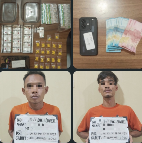 Dalam pengungkapan tersebut, petugas mengamankan dua orang laki-laki pada Minggu, 18 Januari 2026, sekitar pukul 18.00 WIB, di Jalan Raya Samarang, Desa Langensari, Kecamatan Tarogong Kaler, Kabupaten Garut, Jawa Barat.